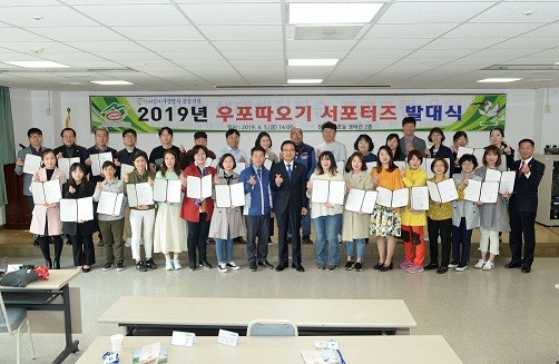 | ▲ ※사진설명 :우포따오기 서포터즈 발대식에서 기념 촬영을 하고 있다. | ||