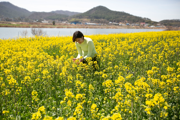 해남군은 삼산천을 따라 3km 구간 토종작물체험장에 유채를 식재, 화려한 볼거리를 제공하고 있다.
