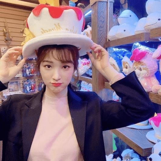 공개된 사진 속에는 율희가 놀이동산 매장에 방문해 캐릭터 인형, 케이크 모자를 쓴 채 카메라를 향해 미소 짓고 있는 모습이 담겨 있다.