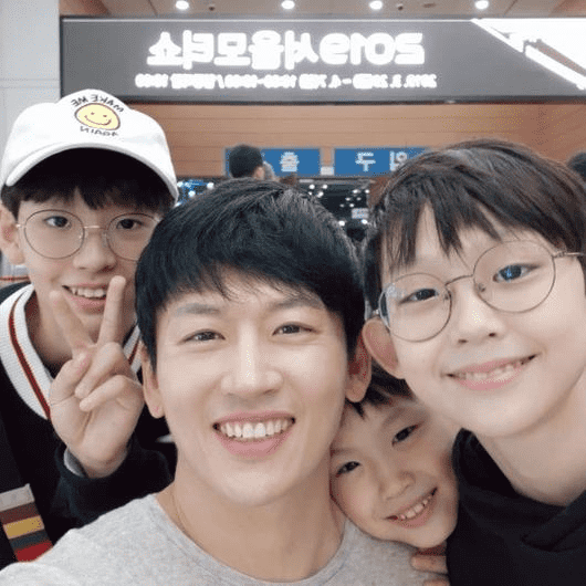 공개된 사진 속 박지헌은 아들들과 옹기 종기 모여서 카메라를 응시하는 모습. 박지헌의 세 아들은 박지헌을 똑 닮은 비주얼로 시선을 끌었다.