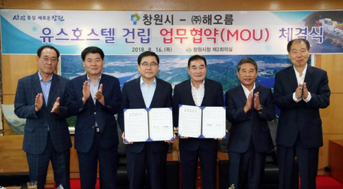 | ▲ 창원시가 지난해 8일 16일 민간업체(주)해오름과 청소년 유스호스텔 건립 투자협약을 체결했다. | ||