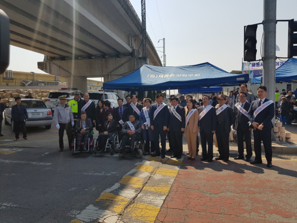 경기 동두천시 교통장애인협회에서는 지난 5일 교통장애인협회 사무실 앞에서 내빈 및 장애인, 자원봉사자 등 100여명이 참석한 가운데 교통사고 줄이기 차량행렬 캠페인을 실시했다. 사진은 참여자들이 기념촬영을 하는 모습. (사진제공=동두천시청)