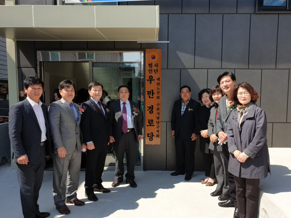 최근 경기 수원시 팔달구 우만1동은 국회의원, 시의원, 단체원 등 100명이 참석한 가운데 우만경로당 신축 개소식을 가졌다. 사진은 개소식에 참석한 관계자들이 기념촬영을 하는 모습. (사진제공=수원구청)