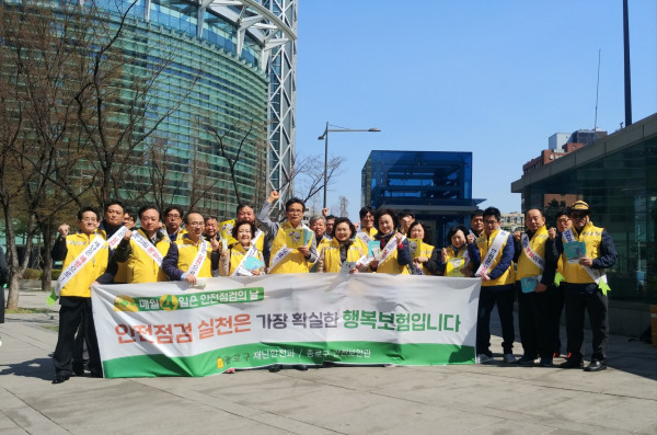 서울 종로구(구청장 김영종)가 최근 종각역 1, 2번 출구 앞에서 ‘안전점검의 날’ 캠페인을 열고, 불법 주정차 주민신고제와 행정안전부의 신고전용 어플인 ‘안전신문고’를 홍보했다. 사진은 캠페인 참가자들이 캠페인을 펼치고 있는 모습. (사진제공=종로구청)