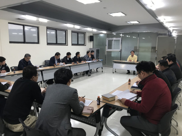 경기 동두천시 시설사업소는 지난 9일 시민회관 리모델링 공사업체들과 회의를 진행했다. 이번 회의에서 시설사업소장은 리모델링 공사업체들에게 앞으로 진행될 공사에 대해 안전사고 예방 및 차질 없는 공사 진행을 당부했다. 사진은 참여자들이 회의하고 있는 모습. (사진제공=동두천시청)