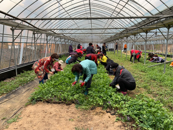 경기 의정부시 도시농업기술과는 지난 9일 도시주부들의 농업에 대한 이해증진과 농작물 수확체험을 통한 도농교류를 위해 주부 80여명이 참석한 가운데 양평군 일대에서 농사체험 교육을 실시했다. 사진은 참여자들이 봄나물을 수확하고 있는 모습. (사진제공=의정부시청)