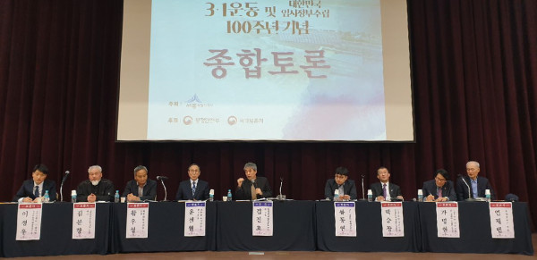 세종시가 최근 정부세종컨벤션센터에서 3.1운동 및 대한민국임시정부수립 100주년을 기념하는 ‘시민 학술세미나’를 개최했다. 이날 세미나는 세종지역 3.1 만세운동 및 대한민국임시정부 수립과 통합운동을 주제로 진행됐다. 사진은 학술 세미나에서 토론을 하고 있는 참가자들의 모습. (사진제공=세종시청)