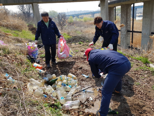 경기 남양주시 다산행정복지센터는 최근 도농동 왕숙천 하천 제방에서 불법으로 경작되고 있는 농작물에 대해 행정대집행을 실시했다. 이날 굴삭기 1대, 앰뷸런스 1대, 직원 10여명 등이 동원됐다. 사진은 하천 쓰레기를 수거하는 모습. (사진제공=남양주시청)