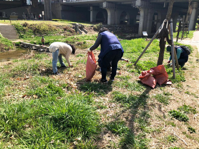 지난 16일 서울 구로구 주부환경구로구연합회, 도림천을 사랑하는 모임, 안양천을 사랑하는 모임, 환경사랑모임 등 구로의제21실천단과 1사1하천살리기참여기업체, 지역주민 등 100여명이 도림천에서 수질개선 정화활동을 실시했다. 사진은 정화활동중인 참가자들의 모습.(사진제공=구로구청)