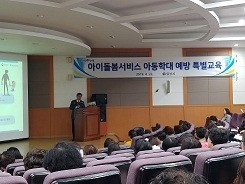 강사로 나선 경남아동보호전문기관 양산사무소 이철현 센터장은 아동학대 동영상 사례, 아동학대 예방 및 신고의무에 관한 법령, 피해아동 보호 절차 등을 교육했으며, 아이돌보미의 올바른 역할 및 아동학대 신고를 재차 강조했다.