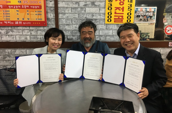 서울 성북구 월곡2동복지협의체는 최근 지역 상점 동덕털보곱창과 '우리동네 나눔가게(우리마을외식나들이)' 협약식을 개최했다. 나눔가게로 선정된 털보곱창은 이번 협약을 통해 매월 청소년 2가구에 음식 쿠폰을 지급한다. 사진은 관계자들의 기념촬영 모습. (사진제공=성북구청)