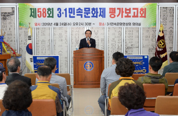 경남 창녕군이 24일 3.1민속문화향상회와 함께 행사 관계자 등 100여명이 참석한 가운데 3.1민속문화향상회 회의실에서 '제58회 3.1민속문화제 평가보고회'를 개최했다. 사진은 한정우 군수가 인사말을 하는 모습. (사진제공=창녕군청)