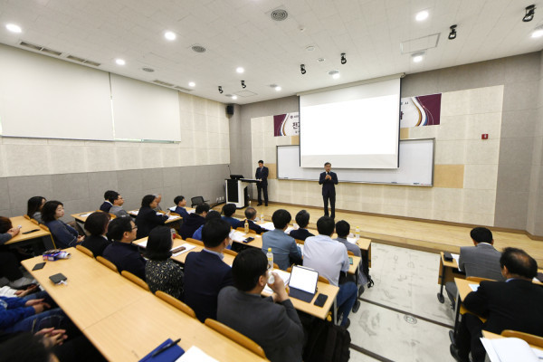 경기 김포시는 24일 김포대학교 HOPE2020센터에서 '김포시 성장동력을 위한 전기차 산업의 역할과 육성방안 세미나'를 개최했다. 사진은 세미나에 참석한 정하영 시장이 인사말을 하는 모습. (사진제공=김포시청)