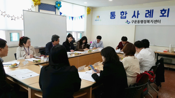 경기 수원시 권선구 구운동 행정복지센터는 24일 지역내 복지사각지대에 놓여있는 위기가정의 문제해결을 위한 민관 협력 통합사례회의를 개최했다. 사진은 참여자들이 이야기를 나누고 있는 모습. (사진제공=수원시청)