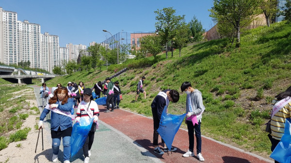 경기 남양주시 별내동 행정복지센터는 지난 27일 지역내 거주하는 학생들과 학부로 구성된 '하.소.연'(하천소생연합봉사단) 약 40여명과 함께 덕승천 일대 하천정화활동을 실시했다. 사진은 학생들이 하천주변 쓰레기를 줍고 있는 모습. (사진제공=남양주시청)