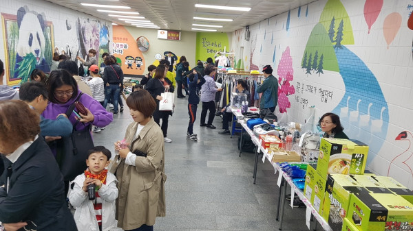 경기 수원시 장안구 정자1동 통장협의회는 최근 동신지하보도에서 ‘사랑의 나눔장터, 정일마켓’을 성황리에 개최했다. 공유경제를 활성화하고 불우이웃을 돕기 위해 진행된 이번 정일마켓에는 500여명의 방문객이 찾았다. 사진은 행사장을 찾은 주민들이 물건을 고르고 있는 모습. (사진제공=수원시청)