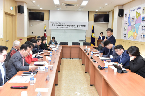 [시민일보=이대우 기자] 서울시의 김포공항 활성화 정책 추진으로, 양천구 공항소음피해지역 주민들의 피해가 급증할 것으로 예상됨에 따라 양천구의회(의장 신상균) '공항소음피해대책특별위원회'가 구의회 1층 대회의실에서 공항소음피해지역 인근 주민 10여명과 간담회를 열고 주민 의견을 수렴했다.