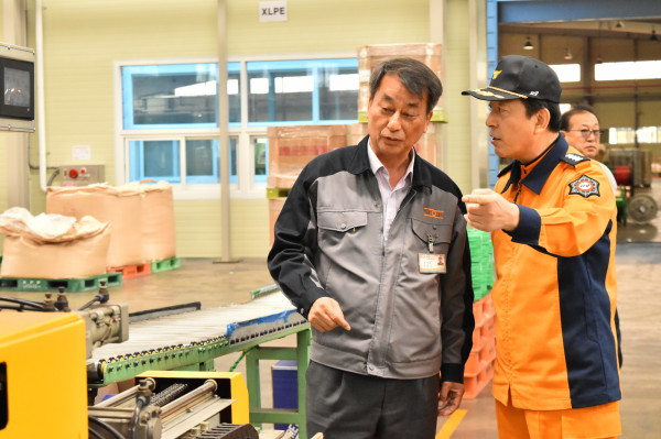 경기 동두천소방서가 최근 지역내 공장시설 2곳을 방문해 화재예방에 대한 CEO 관심제고 및 안전담당자 역할 강화 등 화재저감을 위한 '소방안전 현장컨설팅'을 실시했다. 사진은 선병주 서장이 공장시설 안전에 대해 설명하고 있는 모습. (사진제공=동두천시청)
