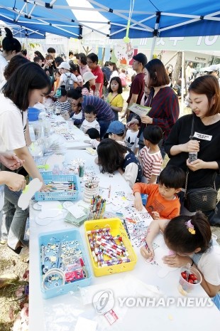 지난 4일 오후 광주 북구 시화문화마을 잔디밭에서 열린 제97회 어린이날 기념행사에서 어린이들이 부모와 함께 즐거운 시간을 보내고 있다.