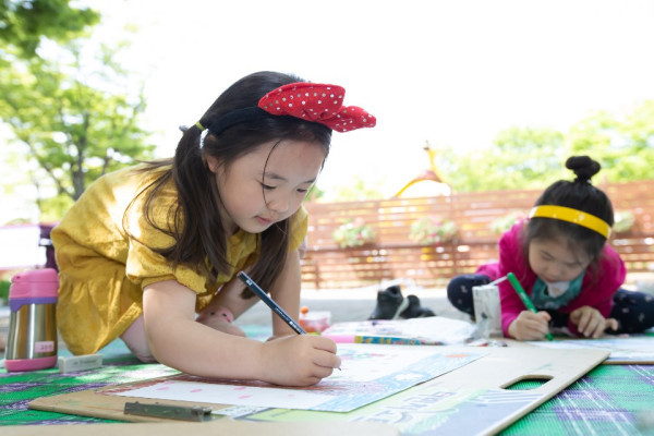 5일 고양국제꽃박람회장(일산 호수공원) 내 한울광장에서 열린 ‘꽃그림 그리기대회’에 참가한 꼬마 친구들이 꽃 그리기에 열중하고 있다.