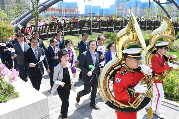 경기 양주시는 지난 5일 옥정중앙공원에서 ‘2019 양주시가족문화대축제’를 성황리에 개최했다. 사진은 이날 축제 참여자들이 태극기를 들고 행진을 하고 있는 모습. (사진제공=양주시청)