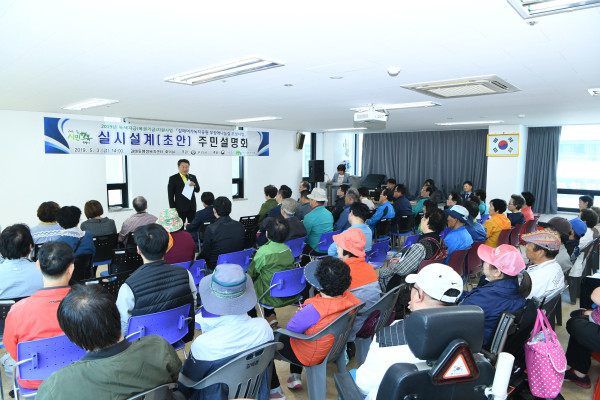 경기 구리시가 7일 갈매동행정복지센터 회의실에서 지역 주민과 장애인단체 관계자 120여명을 대상으로 갈매여가녹지공원 무장애 나눔길 조성 사업에 대한 실시 설계(초안) 주민설명회를 개최했다. 사진은 안승남 시장이 설명회를 진행하는 모습. (사진제공=구리시청)