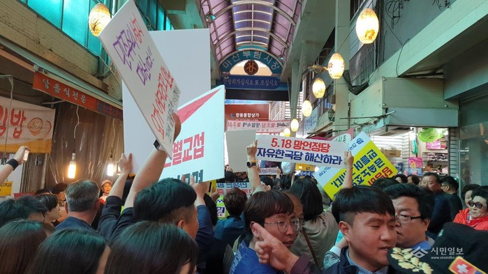 이날 황 대표를 기다리던 시민들은 "물러가라! 문재인,물러가라! 문재인,물러가라! 문재인"을 외치며 노조들을 비난했다.일부 노조들은 시민들과 거친 몸싸움도 어른들을 향해 폭언도 서슴치 않았다. 노조들에 의해 민생투어가 저지되면서 상인들과 노조들간의 언성이 높아졌고 여러 곳에서 상인과 시민들이 노조들과 몸싸움이 벌어졌다.