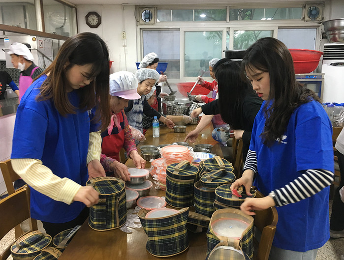 이날 봉사단원들은 오전 일찍 복지관을 찾아 음식 준비에 어려움을 겪고 있는 지역 내 어르신들을 위한 도시락 반찬 조리에 일손을 도왔다. 이어 된장국, 톳나물무침, 불고기 등 어르신들이 좋아하는 반찬들과 밥, 국 등을 용기에 정성스럽게 담아 포장해 홀몸 어르신 댁을 직접 찾아 도시락을 전달했다.