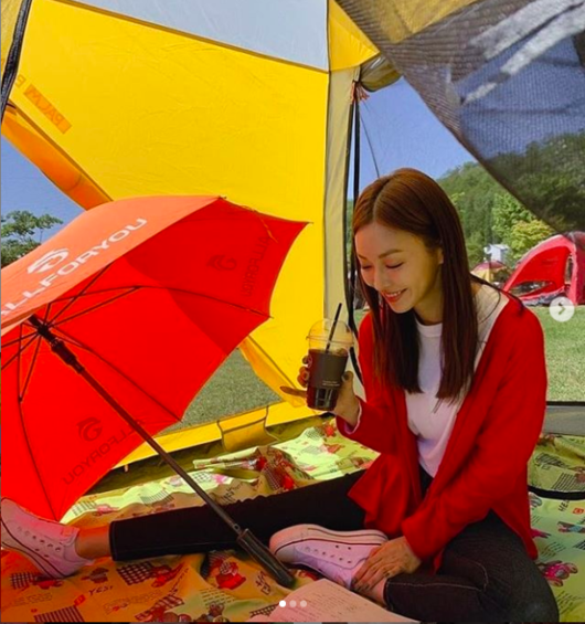공개된 사진 속 김소연은 잔디밭에 쳐놓은 텐트 안에 앉아 시원한 커피를 마시고 있다. 부쩍 뜨거워진 햇빛을 피해 촬영 대기를 하고 있는 모습. 이런 김소연의 얼굴엔 미소가 끊이지 않는다.
