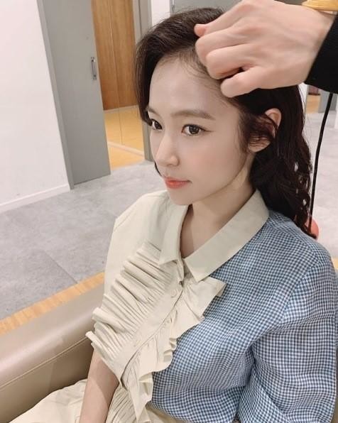 공개된 사진 속 홍자는 의자에 앉아 머리 손질을 받고 있는 모습이 담겼다. 단아한 분위기 속 뚜렷한 이목구비가 눈길을 끈다.