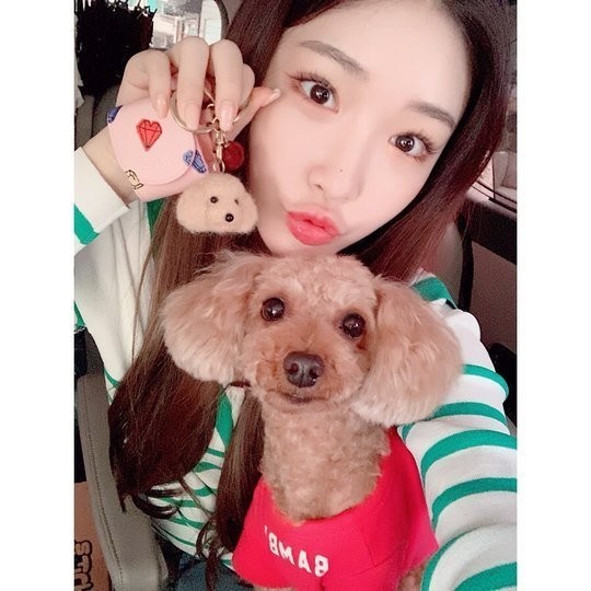 청하 공식 인스타그램에는 5월 12일 여러 장의 사진이 게재됐다. 사진 속에는 반려견을 꼭 닮은 키링을 든 청하의 모습이 담겼다.