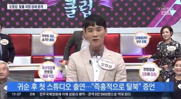 최근 방송된 TV CHOSUN '모란봉클럽'에는 지난 2017년 판문점으로 귀순한 북한병사 오청성이 출연해 시청자들의 시선을 사로잡았다.
