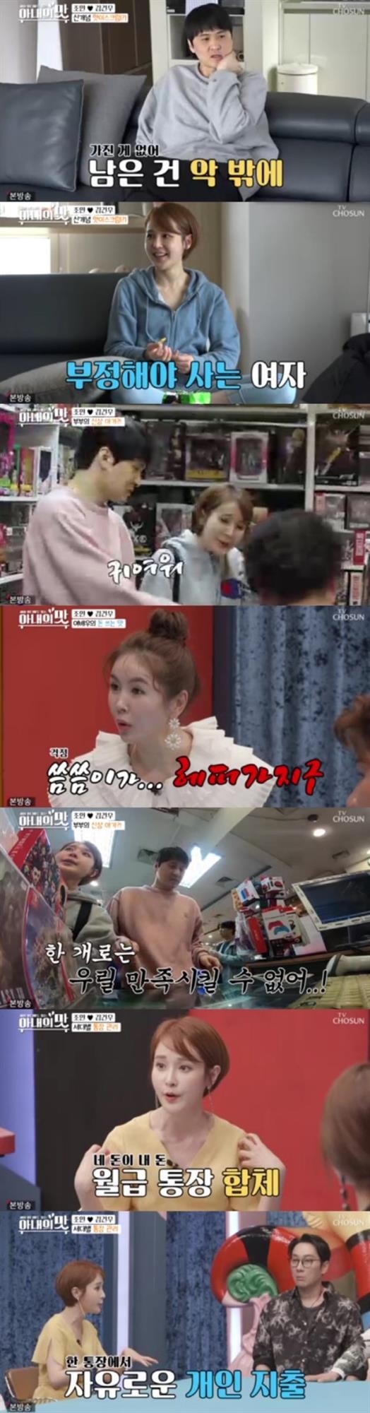 이후 집으로 들어온 조안은 "요즘에는 우리도 계획적으로 돈을 관리해야 하지 않을까 싶다"며 "통장 관리자를 정하자"고 말했고 남편 김건우 씨는 조용히 생각하더니 "모든 정책이라는 게 긴급한 도입은 체하게 돼 있어"라고 운을 뗐다. 이어 그는 "그러니까 시정 기간, 시동 기간을 정해서 너 한달, 나 한달 번갈아서 한 다음에 서로 결과를 뽐내고 결정하자"고 해결 방안을 제시했다.