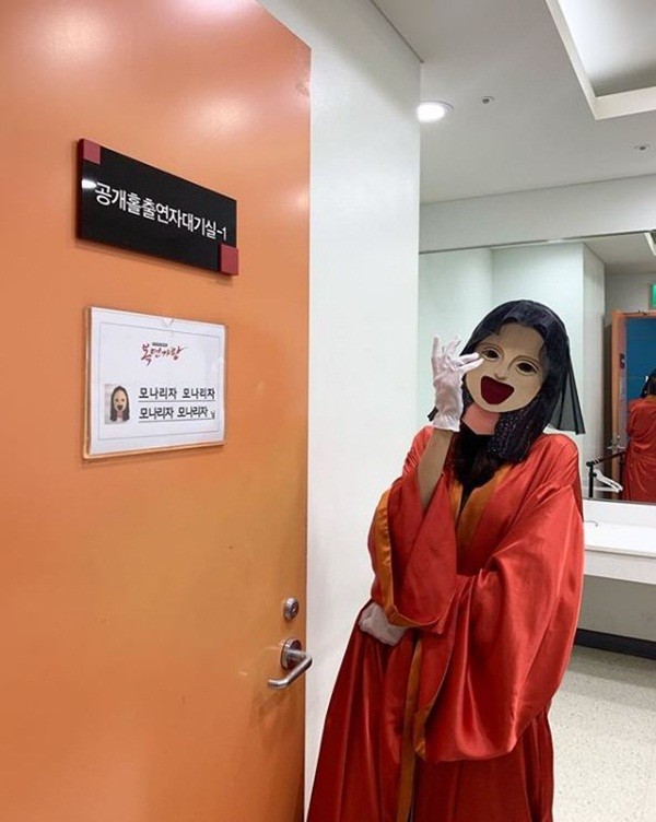 공개된 사진 속 양미라는 모나리자 가면을 쓰고 복면가왕 대기실에서 밝은 포즈를 취해 시선을 끌었다.