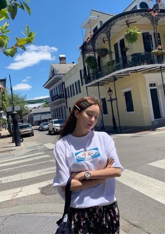 공개된 사진 속에서 효민은 양갈래 머리를 한 채 행복한 미소를 짓고 있다. 또한 흰 티셔츠에 긴 치마를 입은 패션센스가 돋보인다.