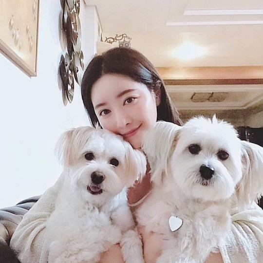 사진 속 홍수아는 반려견을 껴안고 행복한 미소를 짓고 있다. 홍수아의 뚜렷한 이목구비가 청순함을 배가했다.