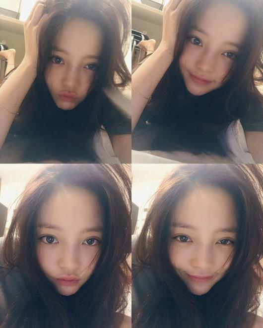 공개된 사진 속 구하라는 잠들기 전 침대 위에서 팬들에게 인사를 하고 있는 모습. 눈수술 후 더욱 예뻐진 눈매가 인상적이다.