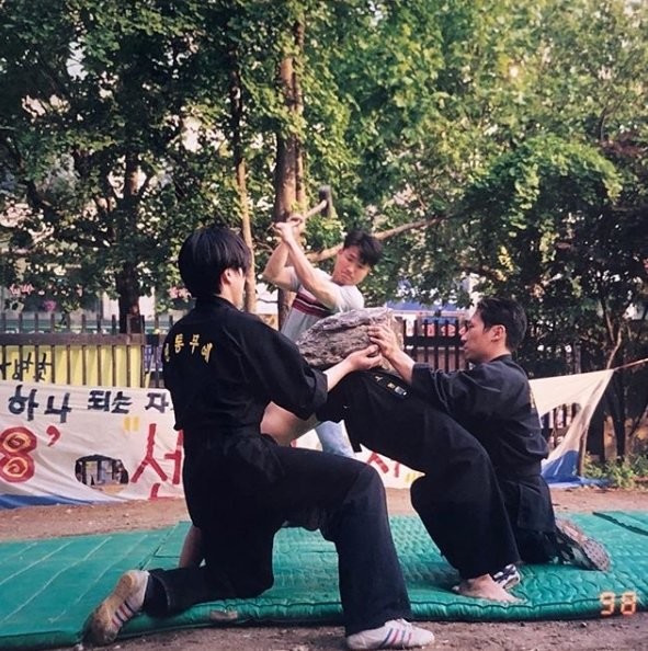 사진 속에는 전통 무예복을 입고 차력에 도전하는 류수영과 이승윤의 모습이 담겨 눈길을 끌었다.
