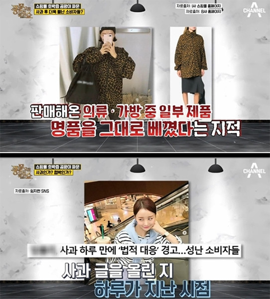 또 한 패널은 의류와 가방 등 일부 제품이 명품을 그대로 카피했다는 지적에 대해 "전 직원의 폭로도 등장했다", "전 직원의 폭로까지 가면 민낯이 드러나게 된다" 등의 발언을 쏟아냈다.