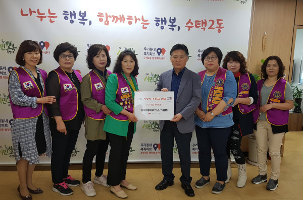 경기 구리시 매화라이온스클럽은 15일 수택2동 행정복지센터에 방문해 저소득 한부모가구 학생 4명에게 전달해 달라며 총 80만원의 장학금을 전달했다. 이날 기탁된 장학금은 20만원씩 전달될 예정이다. 사진은 기념촬영을 하는 모습. (사진제공=구리시청)
