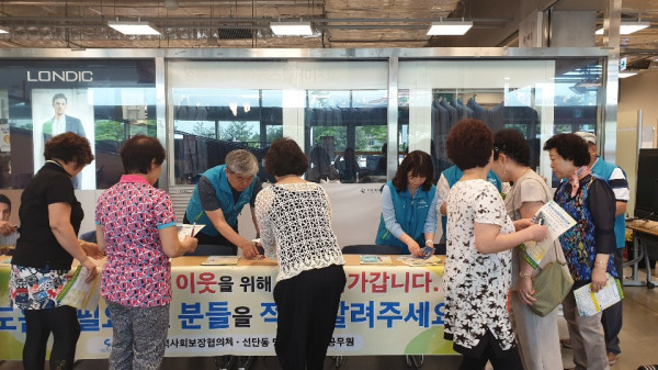 경기 포천시 선단동 행정복지센터와 지역사회보장협의체는 최근 복지사각지대 발굴을 위한 홍보 캠페인을 실시했다. 사진은 이날 캠페인에 참여한 동 맞춤형복지팀과 지역사회보장협의체 위원들이 시민들에게 전단지와 홍보물품을 배부하는 모습. (사진제공=포천시청)
