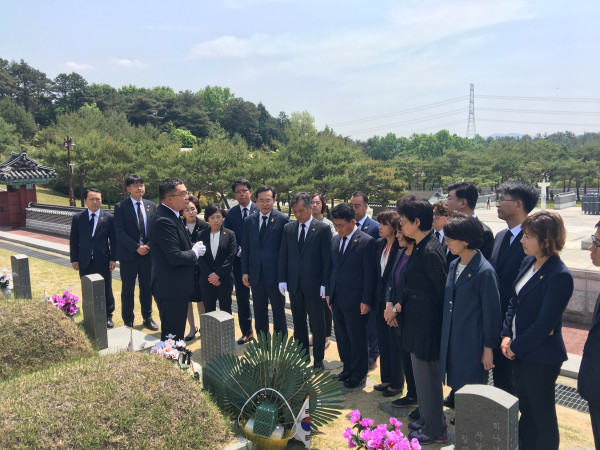 서울시의회 더불어민주당은 최근 5.18민주화운동 제39주년을 맞아 광주를 방문했다. 사진은 국립 5.18민주묘역과 ‘임을 위한 행진곡’의 주인공인 윤상원 열사의 묘소를 찾아 추모하고 있는 모습. (사진제공=서울시의회)