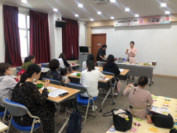서울 성동구는 20일 우리아이 건강밥상 프로그램의 일환으로 만 1세 이하 영아 보호자 및 만 6세 이하 유아 보호자가 참석한 가운데 ‘영양만점 이유식 교실’과 ‘편식 예방 유아식 교실’을 운영했다. 사진은 교육이 진행되고 있는 모습. (사진제공=성동구청)