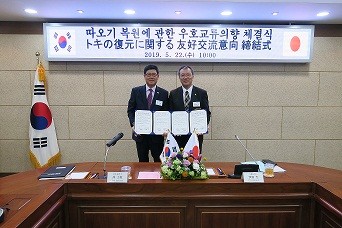 | ▲ ※사진설명:창녕군(부군수 손사현, 좌측)과 사도시(부시장 이토 히카루, 우측)과기념촬영모습. | ||