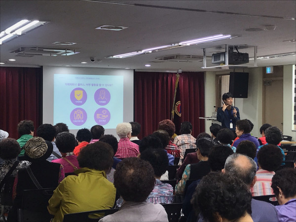경기 의정부시 치매안심센터는 최근 대한노인회 의정부시지회에서 ‘수호천사’ 및 ‘따순밥상’으로 봉사하고 있는 대한노인회 회원 120여명을 대상으로 '치매파트너 플러스 교육'을 실시했다. 사진은 회원들이 참석한 가운데 교육이 진행되고 있는 모습. (사진제공=의정부시청)