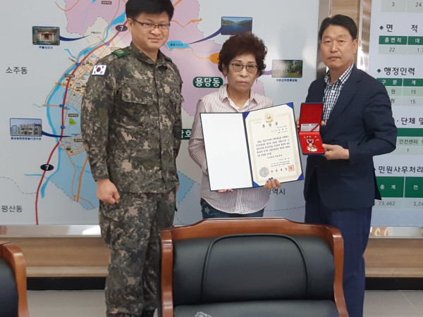 [양산=최성일 기자] 경남 양산시 서창동이 최근 서창동 행정복지센터에서 6·25전쟁 당시 전공을 세운 고(故) 임봉상씨(제15육군병원, 상병)를 대신해 유족인 자녀 임영희씨(61·여)에게 훈장증과 화랑무공훈장을 전도수여했다.
