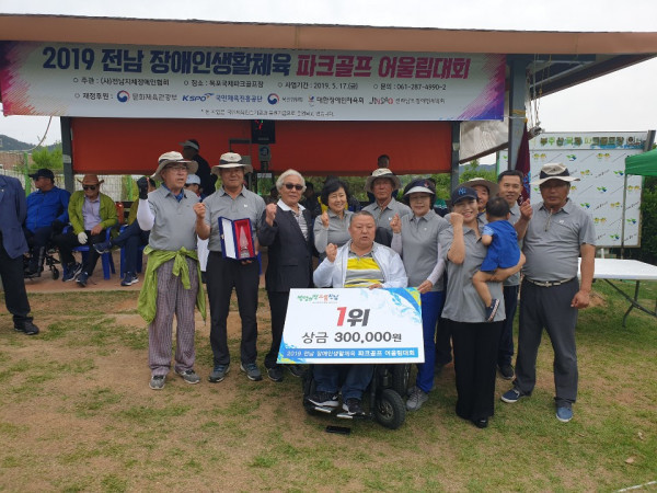 전남지체장애인협회가 최근 전남 목포시 부주산에 위치한 파크골프장에서 도내 지회별 대표선수와 임원 및 장애인 가족 등 200여명 참석한 가운데 기량을 펼쳐 1위는 장성군지회, 2위 목포시지회, 3위 담양군지회가 각각 수상했다. (사진=황승순 기자)