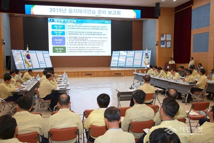 이현규 제2부시장이 주재한 ‘2019년 을지태극연습 준비보고회’는 실·국장, 직속기관·사업소장, 대민기획관, 본청 실·과장 등 118명이 참석해 2019년 을지태극연습 전반에 대한 준비태세를 점검했다.