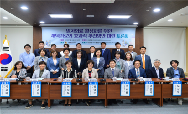 | ▲ ‘일차의료 활성화를 위한 재택의료의 효과적 추진방안 마련 토론회’ 참가자들이 토론회를 마친 후 기념촬영을 하고 있다. (사진제공=서울시의회) | ||