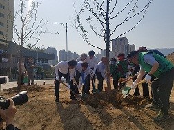 | ▲ 조성 기념 나무식재모습 | ||